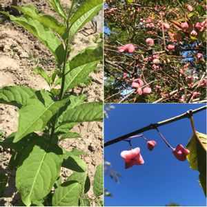 ①マユミの実🍒大っきくなって来ました。 ②マユミの木の実生🌿