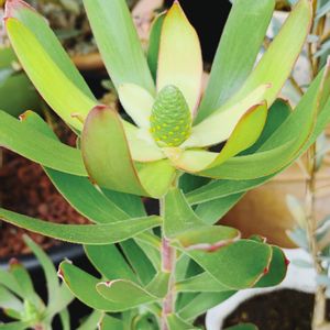 リューカデンドロン 開いたー❗️ ディスカラーだったと思うけど、 サブネームど忘れしました😅 リューカちゃんが咲いたの初めてです❤️ 思わず、叫びましたー笑