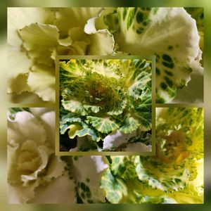 【1枚目】【2枚目】【3枚目】 実家に置いてもらっている葉牡丹の鉢たち。こちらも順調に色づきが進んでいます😊 種まきから136日目/4ヶ月と14日目。 【4枚目】 こちらも実家用で、少し日影になる場所にあるせいか色づきが遅いです。真ん中辺りの株は最近まで他の葉っぱに隠れていたためか、色づいてませんし。また、日当たりの良い方は定植後も葉数を増やしていたのに対して、こちらはあまり育ちませんでした。日当たりってとても大事なんですね😲 【5枚目】 実家のフレアホワイトは少し前から茎まで白く色づいています。この白色は新鮮なカリフラワーの茎の白さに似ていて美味しそうです🤭 これからグッと寒くなるそうで、明日から氷点下になる予報。葉牡丹の色づきもグッと深まってくれるといいな😊