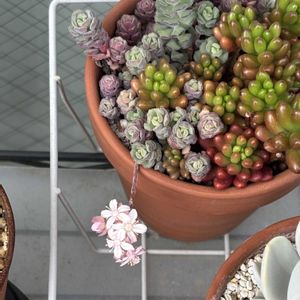 秋に植え替えできなかったから 垂れてるけど少し紅葉し始めてきました💕 寒さが増すともっと可愛いなるんだよなぁ〜🥰 楽しみです 春にはカットして増やそう✂︎