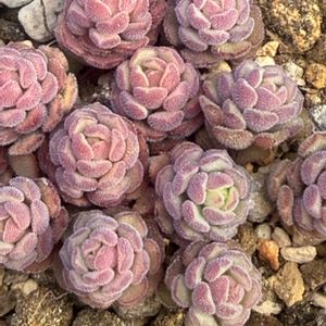 多肉冬越し記録 2024末〜2025初春 屋外は−7℃〜-10℃くらいの寒波がしばしば押し寄せる、10年に一度の厳冬でした。 ハウス内の気温は測ってないですが、ビニール1枚で隔てたのみで暖房も無かったので寒かったことでしょう。 写真のはハウスでは耐えられず、凍傷ダメージが出たことにより慌てて部屋の中に持ち込まれたメンツです。 屋内で過ごした事でだいぶ回復した姿です。 ★真っ先に死んだ ・ジョイスタロック ★だいぶ寒さに弱い ・クラッスラほぼ全部 ・ビアホップ ・スプリングワンダー交配 ・マクドガリー交配 ・ちょこん交配 ・ラウリンゼ交配 ・アドルフィーコッパー ・銀天女交配(割と物による) ・表面に毛がモッケモッケフワフワしてる系のやつ ・発泡スチロール箱内左下のやつ(名札紛失、カクト・ロコさんのやつ) ・アロマティカス ★多少は耐えるが、寒さに弱い ・黄桃大福 ・小梅(スプリングワンダー交配だがコイツは比較的丈夫、逆に春霞はほぼ即死) ・だるま姫秋麗交配 ★コンディション管理によっては寒さで一気に死ぬ ・フユビジン等、葉っぱ分厚いやつ (寒さに強いと聞いていたゆえの雑な水やりの結果一晩で大ダメージを負う) ★備考 ビアホップ、アドルフィーコッパー、モケモケフワフワ系、だるま姫秋麗、クラッスラ全般、カクト・ロコ産札落ち君 彼らは夏にはゴリゴリに強かったのですが、冬は弱かったです。 夏に強いゆえに最強無敵の存在だと思ってましたが、単に暑さに強く寒さに弱いだけです。冬はアカン。 夏の無敵品種シルバースターも、冬に弱いという程ではなかったですが微ダメージ出ました。 センペルビウム君は夏も冬も一年中ピンピンしてます。君が真の無敵マンだったのか。 あと朧月と花筏も元気にしてます。 ★日光 冬でも葉が焼ける 冬寒いからなるべく日に当てたろ! と思っていたらハウス内の棚最上段の苗が、いくつか葉焼けしました。 葉焼けと凍傷のダメージが合わさると、1+1が百万パワーになってマジで死ぬ。 日が直接当たる場所に並べるやつは、葉焼けに強いメンツにしたほうがよいです。ほんとに。 葉挿しを撒いただけのミニミニ苗なんか日光で即死する。