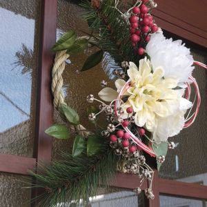 セリアで花材を集めて作った正月飾り🌿 材料費800円🌿🌿