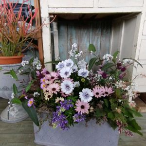 オステオスペルマムが出てくると、春が近いんだな〜って、感じがします🏵️ ハーデンベルギアで、ふんわり感アップ(*^^*)