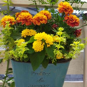 関東地方は、梅雨明け宣言されました☀ 人間もお花も、水分補給〜🚰 連日の猛暑、皆様 ご自愛下さいね❤(ӦvӦ。) ✾マリーゴールド ストロベリーミックス ✾ランタナ ✾バーベナ