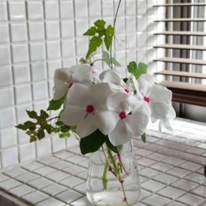 おはようございます☀ 暑くなりそうですね🎐 ハンギングバスケットで、伸びてきたお花を、キッチンの出窓に🌼🌿 ニチニチソウと、斑入り野ブドウのコンビ❤(ӦvӦ。) 涼やかです(*˘︶˘*).。.:*♡