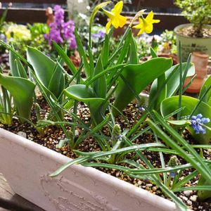 チューリップとムスカリだけよ、と 作ったはすなのに、 あらあらあら🤔 ミニ水仙ちゃん👀 どうして、そこは センターポジション😂😂😂