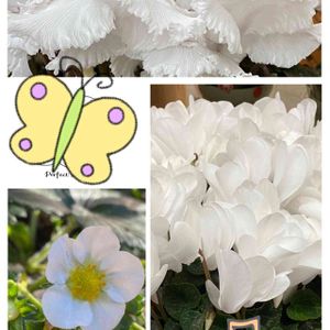 真っ白です〰️〰️🤍🤍🤍💚 しくらめん🤍 苺の花もたくさん咲きました 少し敵花しました 美味しい🍓楽しみ🤍❣️ 白い水曜日に参加させて下さい! 毎月15日は苺の日に花だけ参加させてください😆