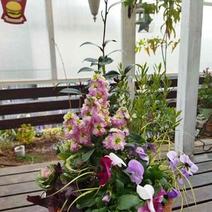 レッスンで、ハンギングバスケットの寄植えを作りました🌼 作ってみてわかった事が色々あります(^_^;) お花がギュウギュウ詰めで、苦しそう。もう少しプリムラの花数を調整したり、リーフを混ぜて、ふんわりすると良かったかな(^_^;) 真ん中がへこんじゃった!これも、反省(^_^;) ハーデンベルギアさん、一体あなたの存在って、何?! みたいな感じで、良さを生かしてあげられなかったなぁ〜… ゴメンナサイm(_ _)m 一人で反省会して、次に生かして行こっと!!