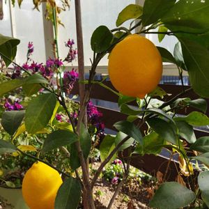 7月18日投稿したレモンちゃん🍋 無事に、ここまで実りました🍋🍋 いよいよ収穫します😂 初めての収穫! 今年は2個、頑張って実をつけてくれて、ありがとう🍋♥