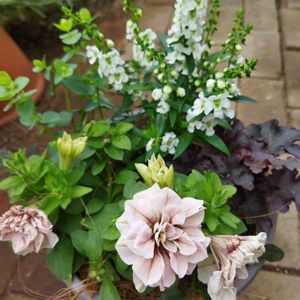 思い立って、作ってみました🌸🌿🌼 ✾アスチルベ ✾ヒューケラ ✾斑入りツタ ✾カレックス (✾黒椿ナイトライダーが後方にいるのですが、まだ小さな苗なので、埋もれてます)