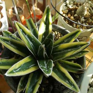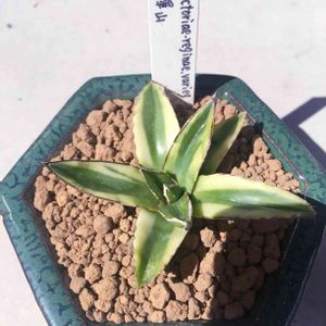 今夜の1枚は、アガベ・笹の雪(輝山) 笹の雪の黄覆輪タイプ😆キレイにペンキものってほしいですね😊