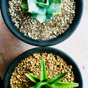 1年で、プラ鉢が変形する程の根鉢が出来てたので、急遽植え替え アガベは場所を取るので、増やさない誓いは今のところ守れてます。