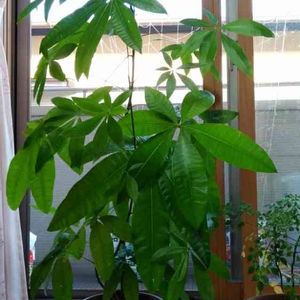 今日のお花 パキラ🌱 バイト先の廃棄箱から拾って帰って30年近くなります✨✨✨✨ 毎年植え替えなきゃと思いつつ、植え替えてもし弱ったらやだなぁとも思いなかなか…( ̄▽ ̄;) 鉢はあるんだけどなf(^_^;