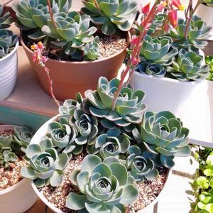 今日から雨が続きそう🌧️ ちょっと前に撮影した七福神丼❇️ まだあるけど写真に収まらず。 冬に小さくしちゃったけどだいぶ復活しました。 今はもう少し育って手前の鉢もぎゅーぎゅーになりました💦 右上と手前は広い鉢に植え替えなきゃ~🏝️