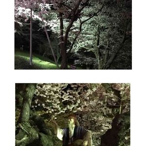 烏帽子山公園の千本桜🌸 ライトアップされ神秘的🤗 今夜は寒くなく花見客で賑わってました♪( ´▽`) 花咲か爺さんもお出迎え🎶