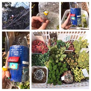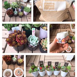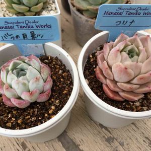 ■記録用■ 奥左から ⁑セダム属 銘月(300円)→根が出ている葉がポロポロと落ちている(くっついたまま発根しているものも!)ものが多くありした。 ⁑エケベリア属トリメンシス(200円)→三つ子ちゃん ⁑カランコエ属 胡蝶の舞(100円)→2つの発芽つき、親株ちゃんは少々弱り気味。 ⁑クセロシキオス属グリーンドラム(100円)→まんまるかわいい ⁑エケベリア属 立田(100円)→葉の形がいびつで通常写真と全然違う子。 ⁑エケベリア属 錦晃星(100円)→葉焼けなのか、せっかくのもけもけちゃんが硬く茶色に。 ⁑エケベリア属 久米の里(100円)→綺麗なので値下げされている理由がよくわからない子。 ⁑黒兎(50円)→初兎♡かわいすぎてかわいい お値下げ品はこんな感じの子たちと、もっとお高い子たちが30〜50%割りされている子たちといました😗