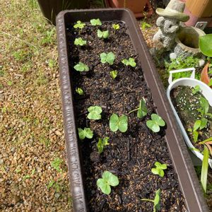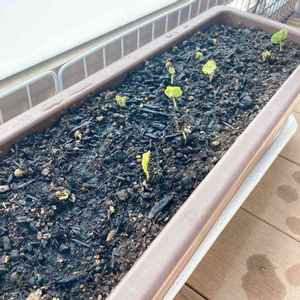 綿を植えました 白、緑、薄茶、濃茶の4色 全部成長するか心配だったので、多めに蒔いたら、ほぼ全部芽が出た🌱🌱🌱 大きな鉢に移さなきゃね😅