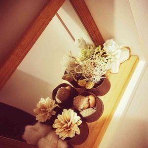 title ちょっとした棚の上 夜中に鏡があるの忘れて 腰抜かすパターン。 コットンは自分で収穫したんだよ。 嬉しかった〜。