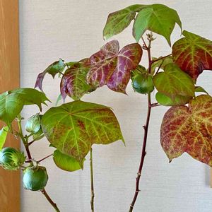 今年のコットン 葉っぱ紅葉してます🍁 なかなか弾けないのでカットしてお部屋で乾かそうと取り込みました😆