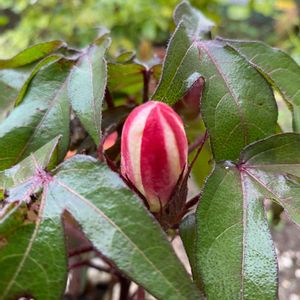 昨日あたりから葉が紅葉して、雨ばかりで枯れるのでは😣と心配した綿の葉🍁 もしやこの3枚葉がくっついた形はつぼみ かも😳 まだ高さは40センチ足らず… 苞だと教えていただきました✨ この中に蕾が膨らんでくるそうです😊 ちなみにホワイトのほうで、ブラウンの3枚葉は緑のままです。