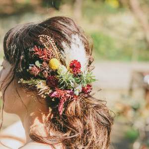 結婚式の際、お花屋さんにオーダーした式場の門に飾る用のスワッグ。 最高に私好み! もちろん持ち帰って玄関に飾ってます。 が、名前がわからない植物の方が多い😂