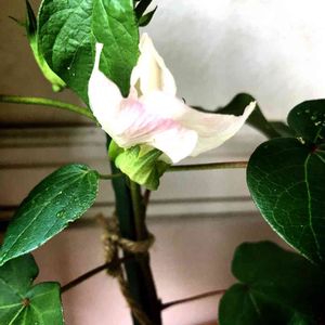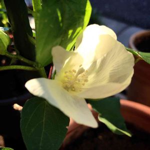 5月に種を蒔いた綿花。 とても成長がゆっくり。綿柎開の頃を過ぎて、どうなるのかな〜と思っていたところ👀 芙蓉に似たやさしい感じのお花です。 台風から守らなくちゃ!
