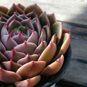 大和錦さんです。 黒っぽくて艶々の葉 葉の裏の赤い模様… かっこよくて惚れ惚れしちゃう…(*´-`) うちの多肉ちゃんたちの中でNo.1のイケメンさんだと思う…💕