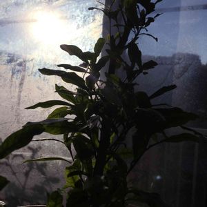 ミラクルフルーツの木と太陽のコラボ。 ネペンテス たちと室内ハウスで同居してるから、湿度も温度も高めです。 (^^;これで枯れたらどうしよう…