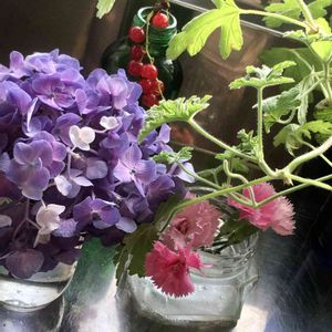 今朝のシンク前💕 ローズゼラニウムの葉っぱを シンク前においてます 魚調理後の手の生臭さも 解消です😊 アジサイはもう二週間になりました🤗