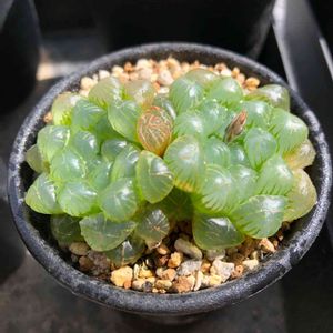 ●ススキノキ科 ツルボラン亜科 ●ハオルチア属 ●大窓魔剣😻😻 朝陽が顔を出した頃、ハオルチア達に光が…😆😆🤠 窓が透けて綺麗です。😁 もう一つの魔剣①とは違い、黒っぽい感じではなく、透けたグリン系の体色をした個体です。☝️🤓 画像では見えませんが、後ろ側に子供がひょっこりしてます。😄😄😁 成長が楽しみです。