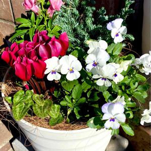 こんばんゎ♪(,,• •,,)☆ 今日は暖かな穏やかな一日でした😊 昨日は風が冷たく寒かったなぁ~~😅😆 昨日の寄せ植えՇ”ਭ·͜·ೢ ⋆ ガーデンシクラメンの赤と白をメーインにクリスマス仕様の寄せ植えを作成😌 赤と白を基本色にクリスマスぽく🎄🎅🏻 °₊·ˈ∗🎄*.❅•