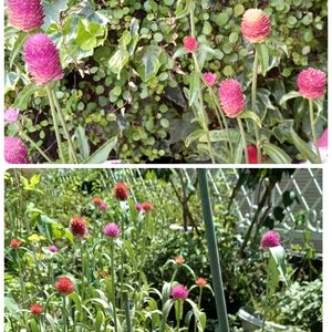 毎日暑いです☀️ 日陰向きの植物の秋明菊やプルモナリアはかなり悲鳴をあげてます🤣 この🔴千日紅だけは元気にスクスクです⬇️の子は去年種蒔きでドライフラーにして その後の種蒔き🌱 少し遅れて開花ですが 頑張ってます💪
