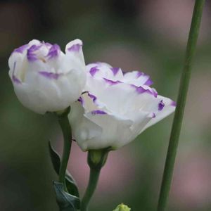 こんにちは🤗 🌸トルコギキョウ🍃さん 最後の四本目の苗です 全て違う色合いで 咲きました とっても嬉しいです😌💓 白🤍に縁にうっすらと薄紫がかってます😊💕