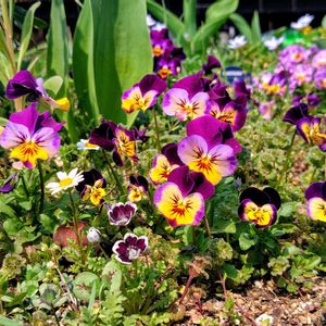種まきビオラとパンジーがたくさん咲いてくれました🎶 親株と同じ姿で咲いてくれたものもあれば全然違う姿になったものもありますが、どれも可愛く咲いています😄 種を採りたくて今は花がら摘みを控えめにしています。 ①ヌーヴェルヴァーグ ②バレリーヌのチュチュ ③④直播き 地面に直接ばら蒔いた種たち。成長は遅かったけれど無事咲いてくれました。 ⑤ときめきビオラ