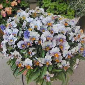 こんにちは♪ 待ちに待ったお花の開花はどんよりとした天候を吹き飛ばしてくれます٩(๑❛ᴗ❛๑)۶ ❶種蒔きっ子のミルフル 蕾は紫💜ですが咲いたら🧡💛 花友さんから頂いたベロニカウォーターペリーブルー🩵 小さくて可愛い😍 メゾンドビオラと一緒に💕 ❷モリモリになって来た我が家のパンビオちゃん達 ⭐︎シエルブリエ ⭐︎みやび ⭐︎evolveストライプ ⭐︎オスカースマイル ⭐︎春マンボー ⭐︎ときめきビオラ ⭐︎ライラックウィング(種蒔きっ子) ⭐︎フェデネージュクレープ ⭐︎ローブドゥアントワネット