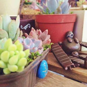 元セロテープ台のロボット兵。寄せ植えの鉢として蘇りました(*^_^*)