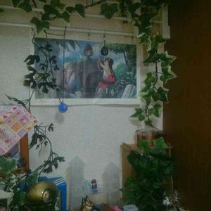 無加工。 数年前からキッチンに飾っていたフェイクグリーンと巨大飛行石の飾りを玄関に移しました。 実は現在家の塗装中でして、アプローチ付近は深い緑になりました。全体はスカイブルーです(´Д`;) 扉が茶色なので、木の中に入っていく感じです。 我が家ラピュタ化計画を玄関からやっていきます。