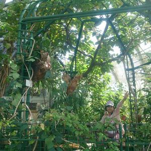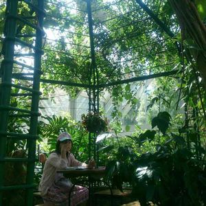 ピラミッド型温室の中央パーゴラにて。 ラピュタのようなガラス張りの場所です。 多摩市立グリーンライブセンター 多摩センターパルテノンの上にあります。