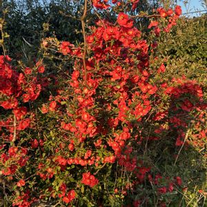 ボケの花が満開になってました😅 畑で放置されたまま毎年花を咲かせてます😆 雑草ぐらいは整理しなければ‥