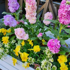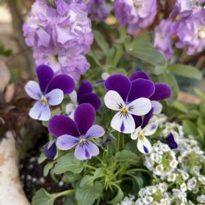 今日は最強寒波❄に強風🌀 庭の寄せ植えのお花達も寒そうですが💦頑張って咲いています✨ 2ヶ月程前に寄せ植えした🪴ビオラ2種✾とスイートアリッサム混合❆ 花数増えてきました✨💜🤍🩷💜