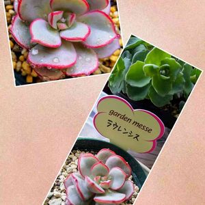 右上の八ヶ岳セレクションの多肉の名前がわかりません。札名はエケベリアのみです。 AIで候補に出てきたピンクプリティ(左上)、サブセシリス(左下)と我が家で似てる色合いのラウレンシス(右下)を比較の為に並べてみました。 これかなという名前がわかる方いたら教えてください。