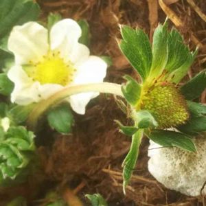 イチゴの花、今年は大きめ🎵 楽しみ🍓