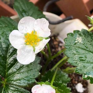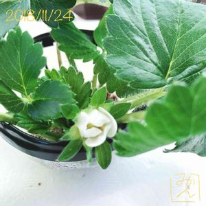 放置気味のいちご🍓 知らないうちに咲いていた😃