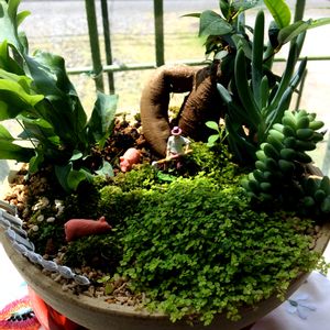 ガジュマルと多肉を寄せ植えしたら、多肉ばっかり大きくなってしまった…一緒はダメだったのか? メインのガジュが見え隠れ(*≧∀≦*)アドバイスお願いします。