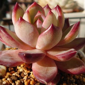 こんばんは😊 🏷️ペコちゃん祭りに 参加させてください❣️ 朝から孫守りに行っていて先程帰宅したら先週ポチった多肉さん達が届いていました。今回はデカベリア中心で、まずは今日のレッドシャンペーンさん❣️七五三バージョンのミルキーと真っ赤な服が可愛いペコちゃんで宜しくお願いします🥰