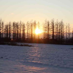 雪原に沈む夕日 太陽の光と影 今日も一日 お疲れ様でした。