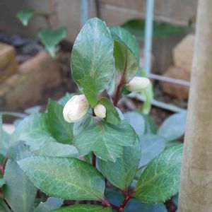 ツバキ 白侘助、咲き出しました。 気づくのはいつも鳥達に負けてしまい、 なかなか、綺麗な花に 巡り会えず、、、 とほほの朝