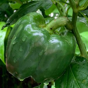 青いけどカラーピーマン(赤)待ちきれずに収穫しました。約10cmとデカくなりましたが一向に赤くならず、、、虫食いになる前だから、まぁいいか!(^_^)