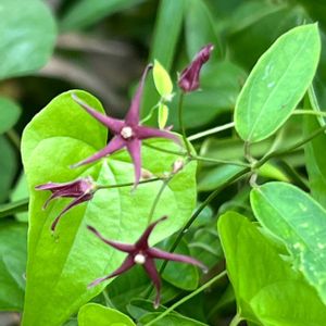 こんばんは🙂↕️ 今日の午後は、本業の在宅医療🩺おじいさん👴🏻の介護に行きまして、仕事終わりに鍼灸治療に行った際、出会いました【コンロンカ/崑崙花💛】 星形⭐️が可愛い〜と思いました🎵 1枚、白い葉っぱもお洒落です☺️