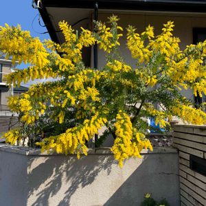 玄関前のミモザが満開に😁 明るい色ですね〜